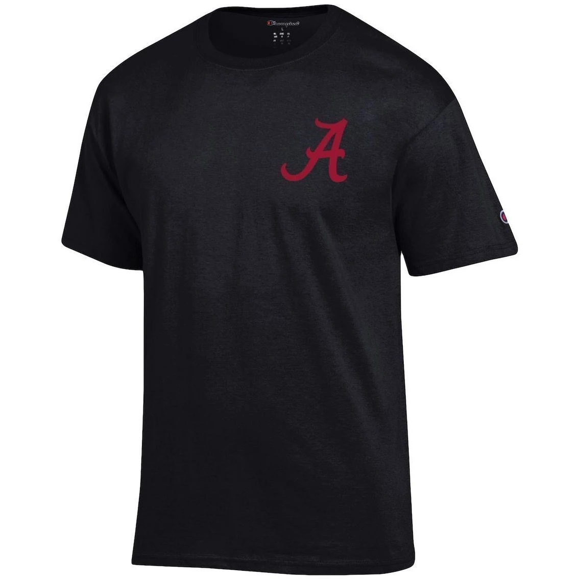 - Show off your Alabama Crimson Tide fandom with this Team Stack 2-Hit T-shirt by Champion. It features bold details of a team logo on the upper left chest with a logo and lettering on the back. This soft tee ensures a comfy fit as you rep your Alabama Crimson Tide.