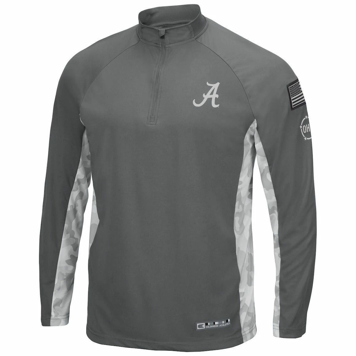 - Layer up and show your team spirit in this OHT Military Appreciation Swoop quarter-zip jacket from Colosseum. It features sleek Alabama Crimson Tide graphics and an American flag to honor those that serve. Perfect for everyday wear, this Alabama Crimson Tide jacket is a great way to share your fandom with the world.