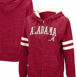 - Effortlessly illustrate your die-hard devotion to the Alabama Crimson Tide with this Colosseum full-zip hoodie. It features an eye-catching marled pattern, large Alabama Crimson Tide lettering across the chest and two front pockets for a classic look. In addition, integrated fleece lining and a comforting midweight design contribute to the overall cozy feel.