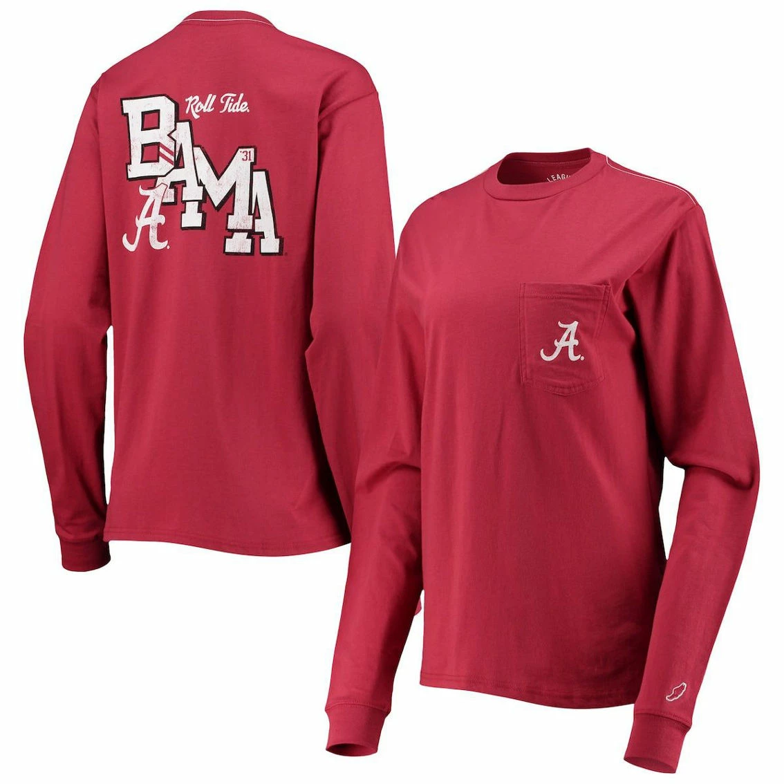 - Comfort never looked as good as this stylish Alabama Crimson Tide Oversized T-shirt from League Collegiate Wear. The soft fabric and large design offer extra room for a relaxed fit. The distressed Alabama Crimson Tide graphics and left chest pocket combine for a charming retro tee.
