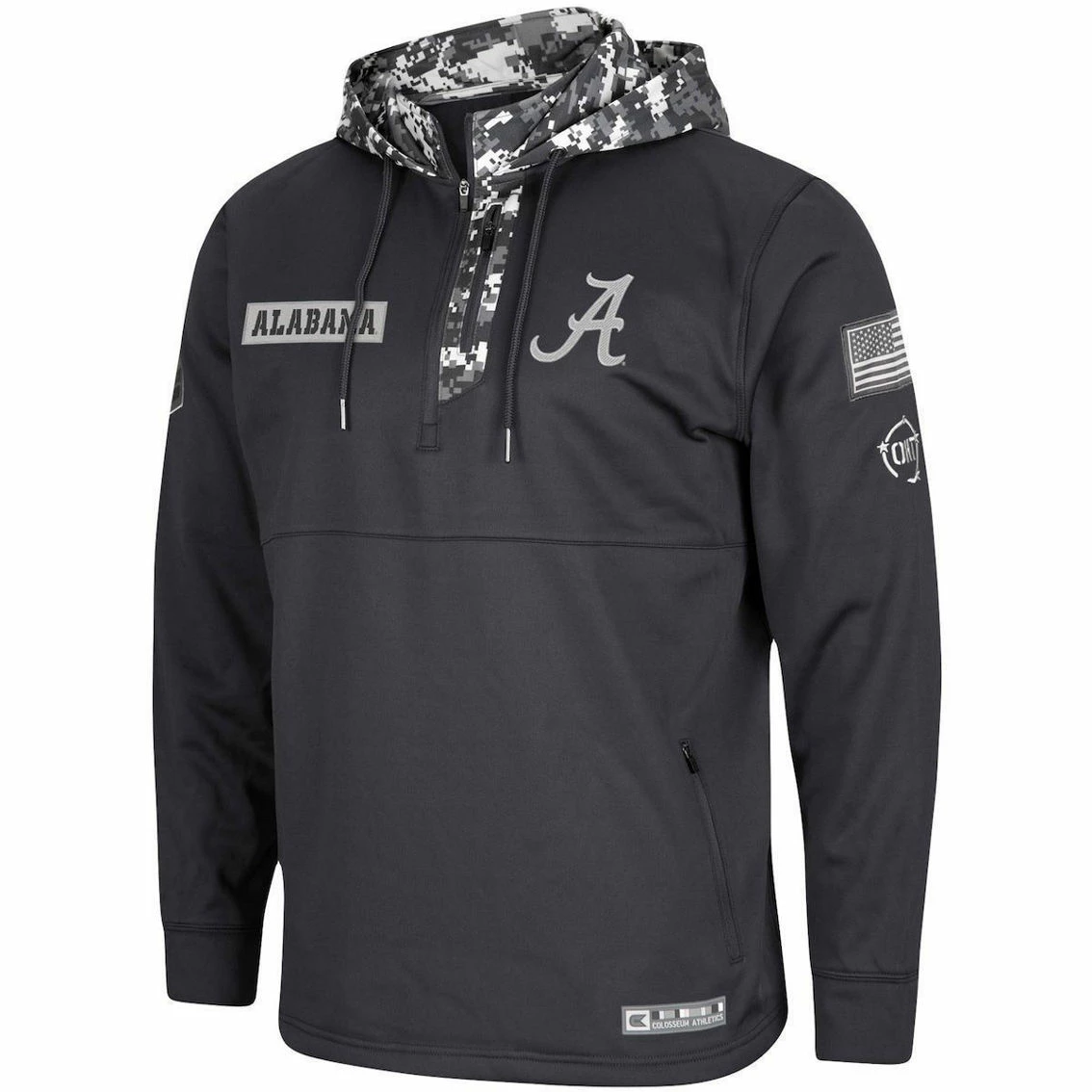 - Express your undeniable dedication to the Alabama Crimson Tide by grabbing this OHT Military Appreciation Digi Camo Quarter-Zip hoodie from Colosseum. It features embroidered Alabama Crimson Tide graphics that coordinate with the camo hood lining. You’ll proudly represent your favorite collegiate squad when you put on this military-inspired piece of outerwear. The NFL does not profit from the sale of Salute to Service products. Charitable contributions are donated to the NFL’s military nonprofit partners. For more information, please visit www.NFL.com/causes/Salute.
