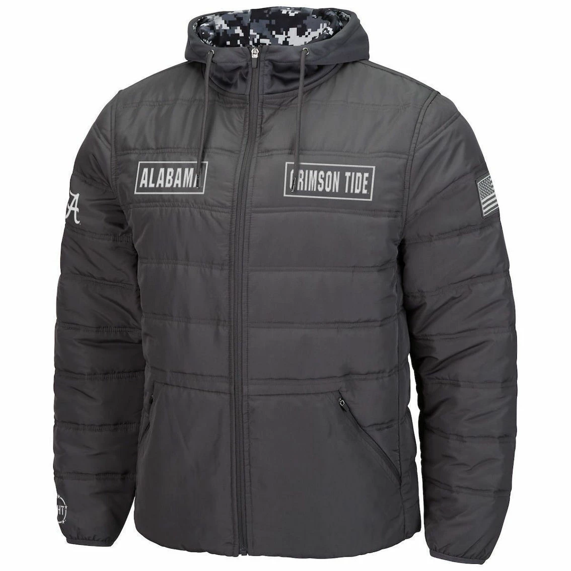 - Ensure your enthusiasm for the next Alabama Crimson Tide win is clear to all in this OHT Military Appreciation Digital Camo Puffer jacket from Colosseum. It features camo detailing and a full-zip closure to give you a look you will be proud to show off this season. Complete with Alabama Crimson Tide graphics on the chest, this jacket will be just the extra layer you reach for on a cool day.
