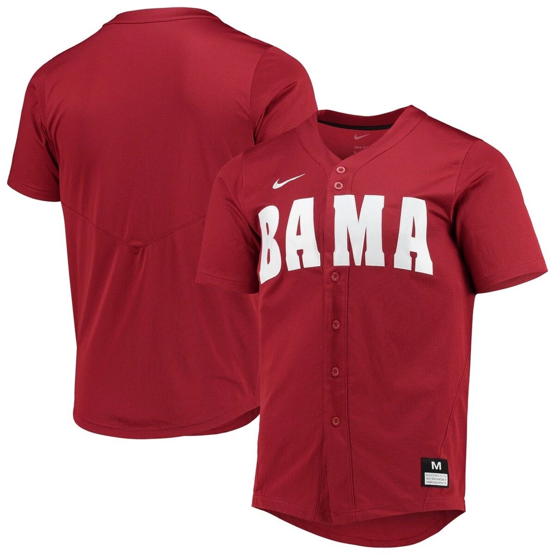 - Make a statement about your Alabama Crimson Tide fandom with this Full-Button Replica baseball jersey from Nike. It features Dri-FIT technology that wicks away moisture to keep you cool and dry, making it perfect for those hot, sunny games. A stitched Alabama Crimson Tide applique on the front lets everyone know where your allegiance lies.