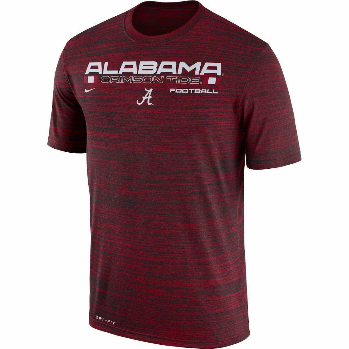 - Staying comfortable while showing dedication to the Alabama Crimson Tide is easy in this Velocity Legend Performance T-shirt from Nike. Additionally, the fun pattern draws attention to the large Alabama Crimson Tide logo on the chest, making it the perfect tee for game day.